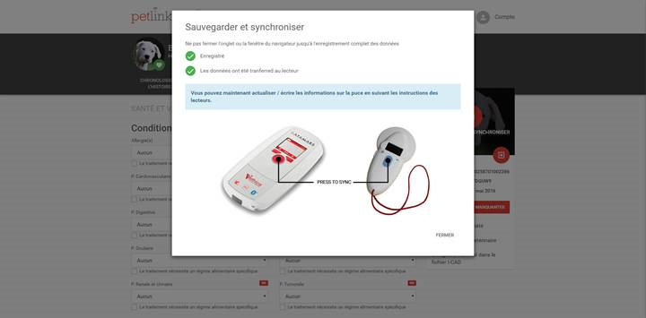 Les vétérinaires sauvegardent automatiquement sur petlink les données médicales qu’ils viennent d’enregistrer sur les puces RW.